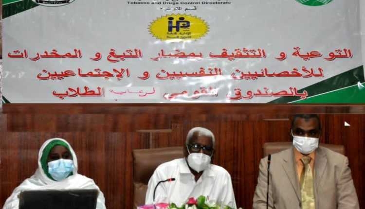 د. صلاح الدين الحاج المخدرات بالمهدد الحقيقي للشباب باعتبارهم الشريحة التى يتم استهدافها لتدمير الأمم والحضارات داعيٱ الى الاهتمام بهم وتقديم الدعم اللازم لهم كما اكد على دور الصندوق القومى لرعاية الطلاب فى تقديم الخدمات الصحية والتوعية اللازمة وذكر ان الوزارة تهدف لايجاد قانون قوى وحازم للمكافحة بالتنسيق مع الشرطة .