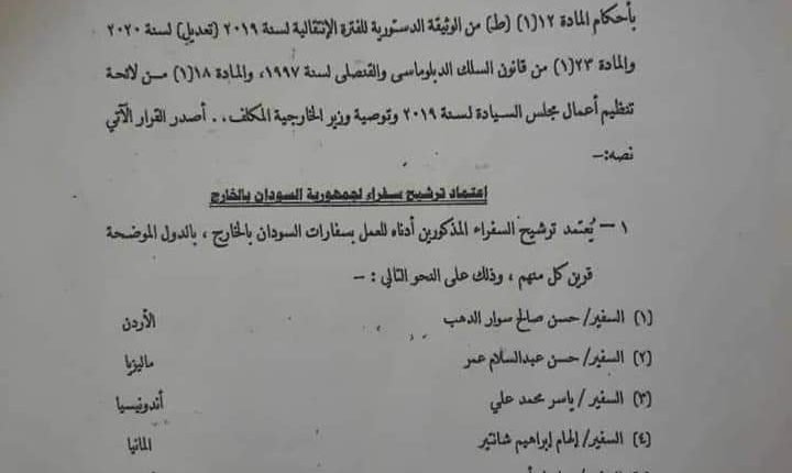 البرهان يصدر قراراً باعتماد 18 سفيراً للسودان بالخارج