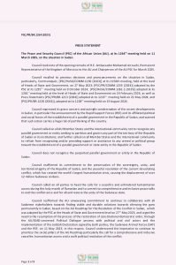 وأكد مجلس السلم والأمن الأفريقي في بيان ، يوم الثلاثاء، إدانته اتجاهات إعلان حكومة موازية ورفضه لتقسيم السودان .