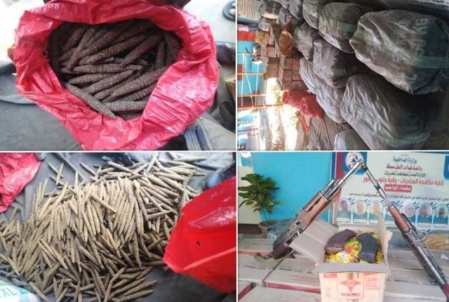 وبالعودة لتفاصيل الضبطية تفيد متابعات (المكتب الصحفي للشرطة) إن الضبطيات تمت في إطار العمل الميداني حيث توفرت معلومة للفرعية بوجود أشخاص ينشطو في ترويج الممنوعات علي إثرها تم تكوين فريق محترف لهذا الأمر وبعد الرصد والمتابعة تمكن الفريق من التوصيات إلى المتهمين والعثور علي عربة دفع رباعي (855) رأس حشيش و(25)طرد من الملابس المستعملة(القوقو) وعدد واحد سلاح كلاشنكوف تم اتخاذ الإجراءات القانونية .