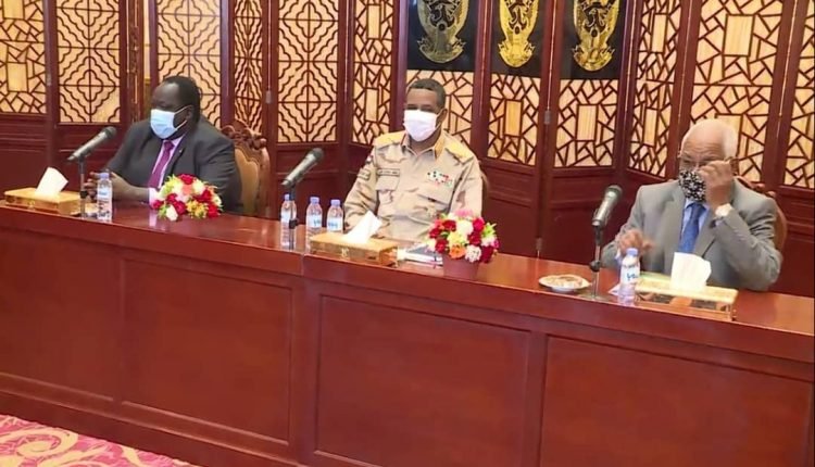 ترأس نائب رئيس مجلس السيادة، الفريق اول محمد حمدان دقلو “حميدتي” بالقصر الجمهوري اليوم، اجتماع شرق السودان، بحضور الاطراف الموقعة على اتفاق جوبا لسلام السودان، بمشاركة وفد الوساطة الجنوبية، برئاسة توت قلواك مستشار رئيس جمهورية جنوب السودان للشؤون الأمنية.
