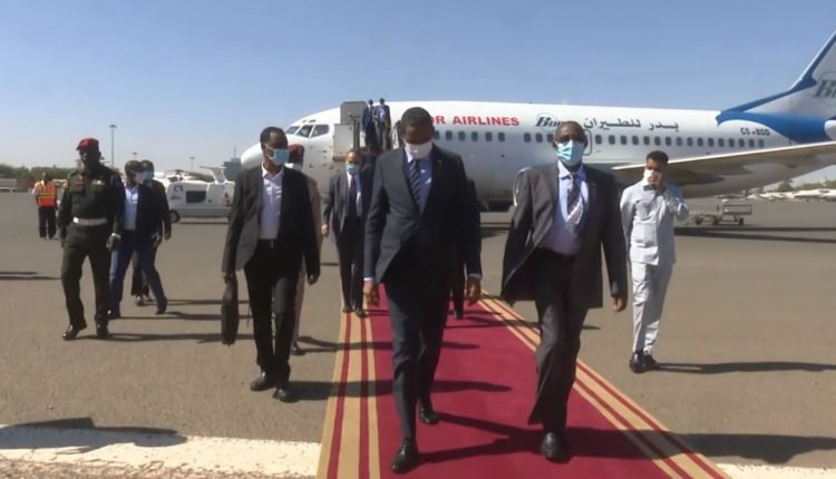 وكان في استقباله بمطار الخرطوم الفريق الركن محمد الغالي علي يوسف، الأمين العام لمجلس السيادة الإنتقالي.