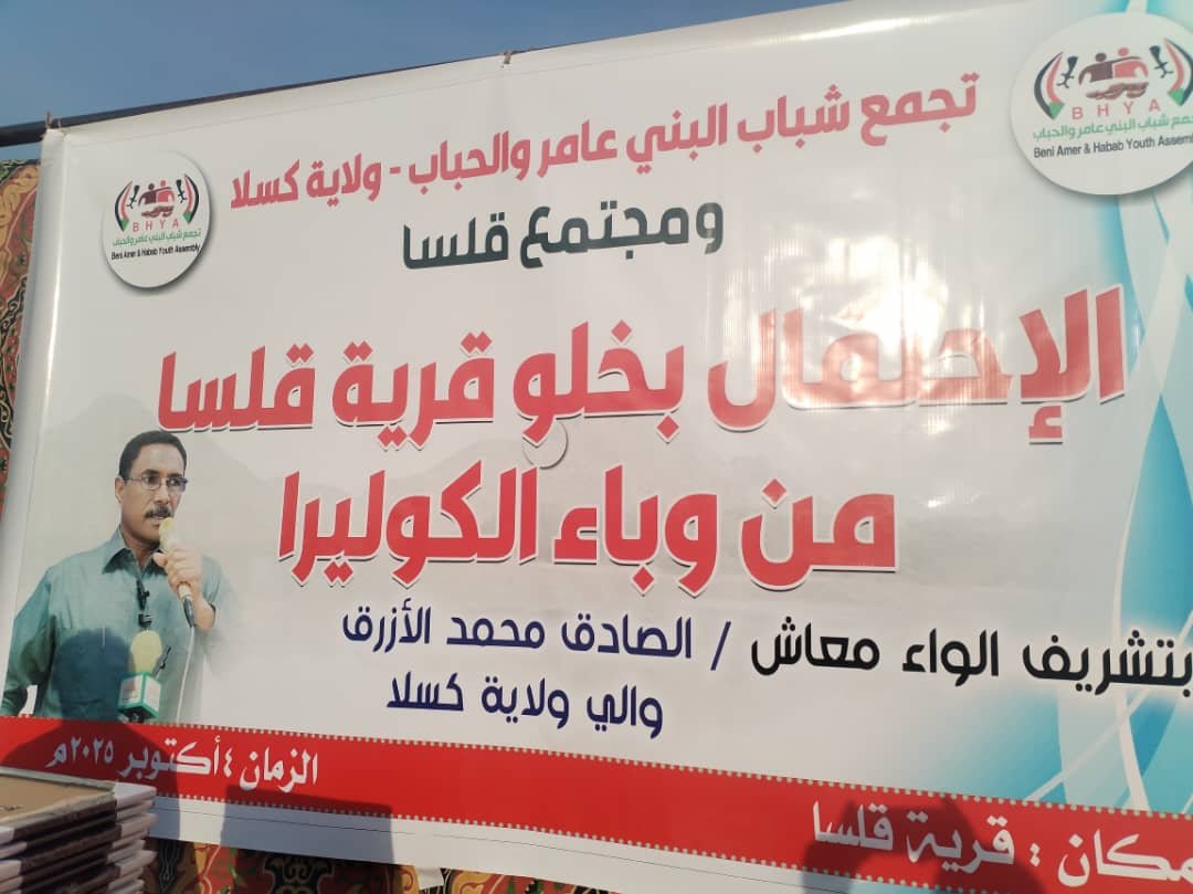 شهد نائب والي ولاية كسلا َمدير عام وزارة التنمية الاجتماعية عمر عثمان آدم شهد بمنطقة قلسا الحدودية بمحلية ريفي كسلا بولاية كسلا شهد فعاليات الاحتفال بالإعلان عن خلو المنطقة من الكوليرا الذي تم الإعلان عنه كأول منطقة بها مرض الكوليرا بالولاية.