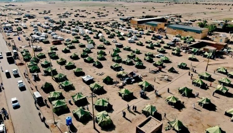 أقيمت الخيام أو المخيم في مدخل القرية حول مبنى الشركة الإيرانية للخدمات الزراعية والذي تم تشييده بمعونة إيرانية قبل 25 عاماً لتقديم الخدمات الزراعية من آليات وتركتورات وحاصدات زراعية إلا أن ذات المبنى الذي ظل الإعلام العالمي يقول عنه إنه مركز لتدريب الإرهابيين استفادوا منه في تخزين مواد الإغاثة التي تبرعت بها جميع الجهات، كما استخدم المبنى في تأسيس عيادة وصيدلية.