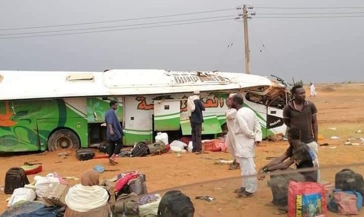 تعرض بص سياحي يتبع لشركة العزيزية متوجه من الخرطوم للقاهرة الى حادث مروري بطريق شريان الشمال صباح اليوم الاثنين مما ادى حسب شهود عيان الى وفاة (6) اشخاص وإصابة (20) أخرين،