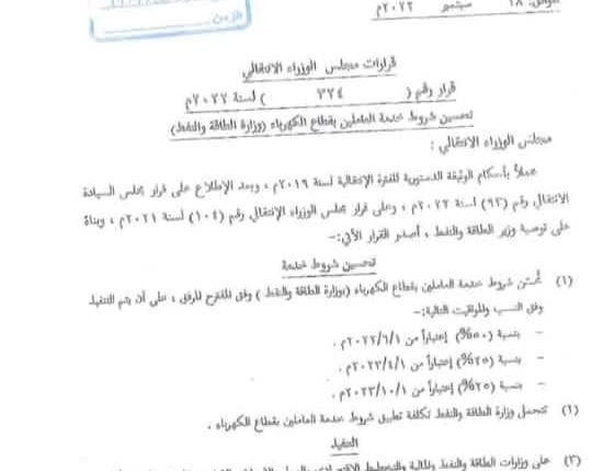 اعلنت لجنة الهيكل الراتبي للعاملين بقطاع الكهرباء عن اضراب شامل غدا الاثنين وذلك عقب صدر قرار من وزير شؤون مجلس الوزراء المكلف حسين عثمان حسين بخصوص الهيكل الراتبي للعاملين بقطاع الكهرباء، وتراجع فيه مجلس الوزراء عن الالتزامات للعاملين مما يعيد الازمة للمربع الاول.